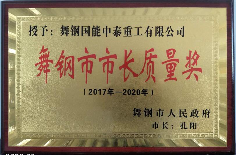 熱烈祝賀:舞鋼國能中泰重工有限公司被舞鋼市人民政府授予2017年度“舞鋼市市長質量獎”
